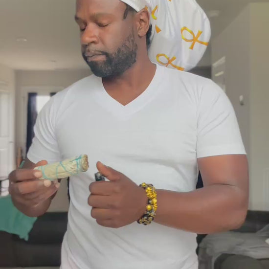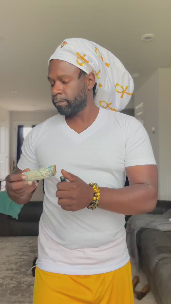 Instantly raise your vibration while you protect your crown with our Ankh Loc Cap. The golden Ankhs shining on the black background are sure to speak life and elevate your energy in your everyday routine.