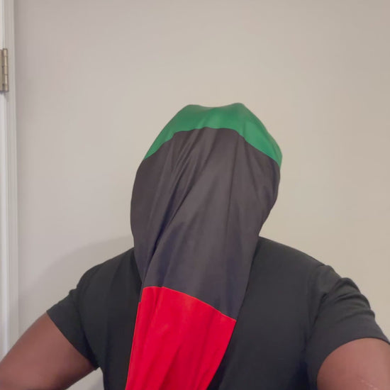 Drenched in the powerful theme of red, black, & green - this 30 inch extended length loc cap honors the struggle, the strength, and the spirit of our culture.